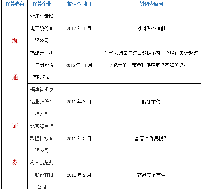 在2011年的时候,海通证券就因为保荐企业IPO涉嫌造假染上污点。如北京海兰信数据科技有限公司高管涉嫌“偷漏税”、福建省闽发铝业股份有限公司上市前夕腾挪举债、海南康芝药业股份有限公司陷“药品安全”门。
