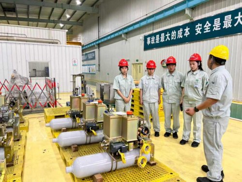 在车间实践环节,技术骨干带领新员工深入生产一线,详细讲解弹簧机构装配工艺、绝缘件检测标准等核心生产技术。新员工们边观察边记录,不时提出专业问题。沉浸式的现场教学,使青年们对特高压开关设备的制造流程有了立体认知。