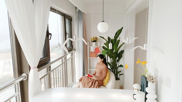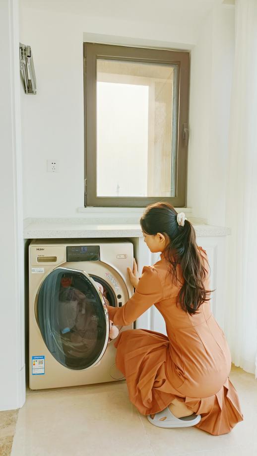 而且设计师还为张女士选用了海尔洗衣机,能够智慧呵护衣物,衣物洗好后还能根据天气自动提醒用户如何晾晒。整个阳台装修下来,空间布局更加合理,设计也更加美观,不仅保留了原有的洗衣晾晒功能,还变成了充满文艺格调的观海休闲区,让张女士十分满意。