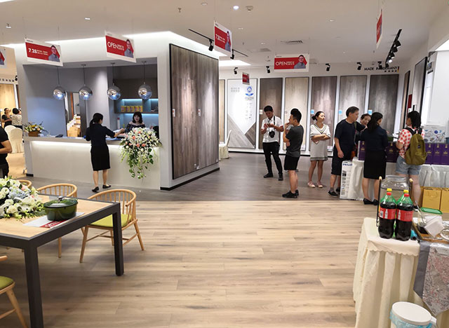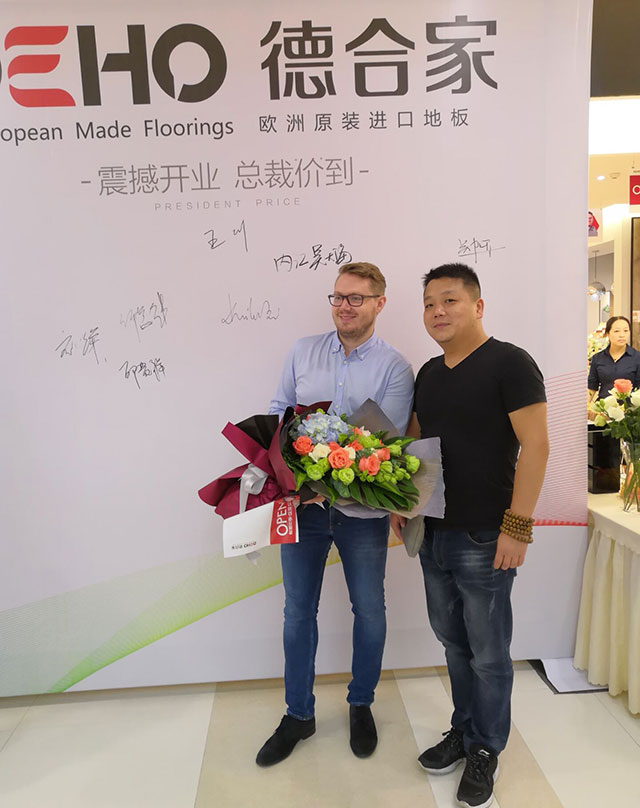 新开业的地板专卖店在成都北富森建材馆的红枫厅四楼A4107,开业仪式得到了德合家北京总部和德国SWISS KRONO TEX 公司的大力支持,而后者亚洲区总裁亲临现场为开幕式剪裁,他表示这个地板专卖店是他见到的最专业的展示店面之一。既有高端产品展示,又有价格亲民的产品。难怪开业当天,人群攒动,签单不断,而许多都是当天的新客户,当看到这样的场面,很少有客户不为所动。